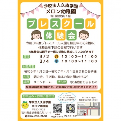 主催者/学校法人久直学園メロン幼稚園 076-258-2668