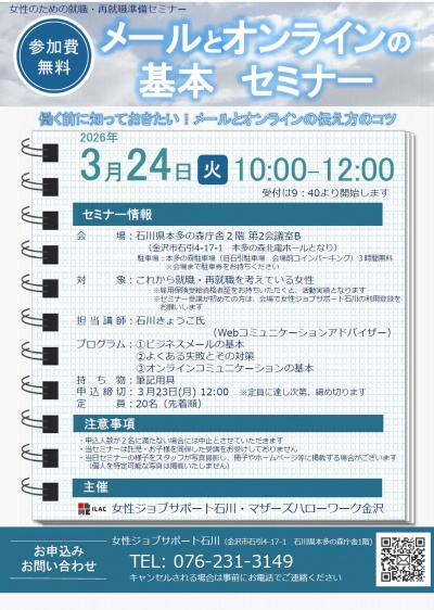 メールとオンラインの基本セミナーを金沢市にて開催します。