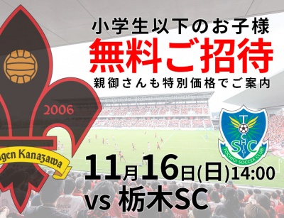 小学生以下!先着無料招待|11月16日(日)14:00キックオフ「受付は11/9(日)まで」