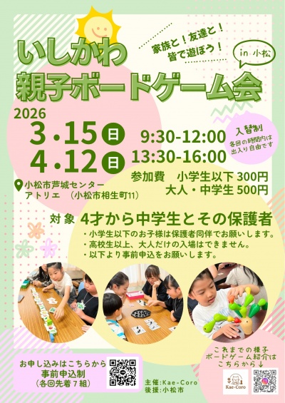 親子で一緒に夢中になれるボードゲーム会!保護者と子どもが同じテーブルで遊び、楽しみながら発見や気づきを分かち合えます。親子の笑顔が広がる時間をどうぞ。